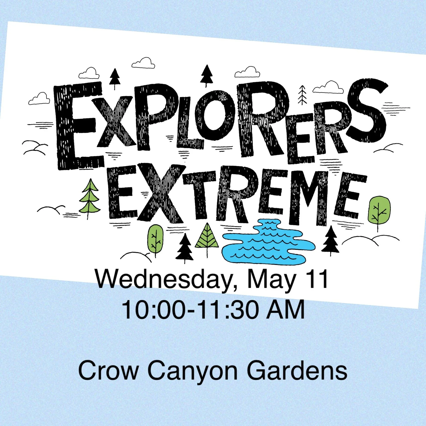 Extreme Explorers is for 3.5 year olds and older who really enjoy hiking and extended exploring. The hikes will be around 1 to 2 miles. This will be an extended adventure through the beautiful creek at Crow Canyon Gardens. We’ll definitely get wet, but we’ll have so much fun exploring a larger area of the creek!